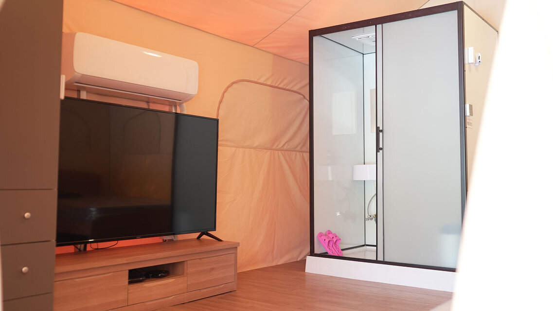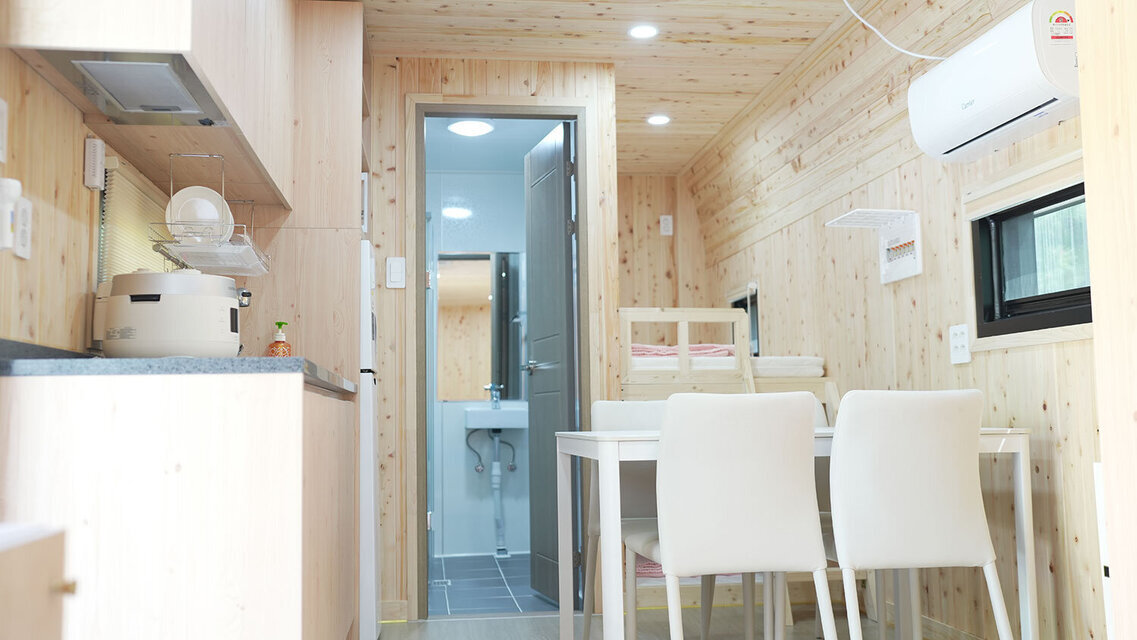 - 시설샤워, 케이블방송, 에어컨, TV, 냉장고, 테이블, 주방기구, 취사도구
